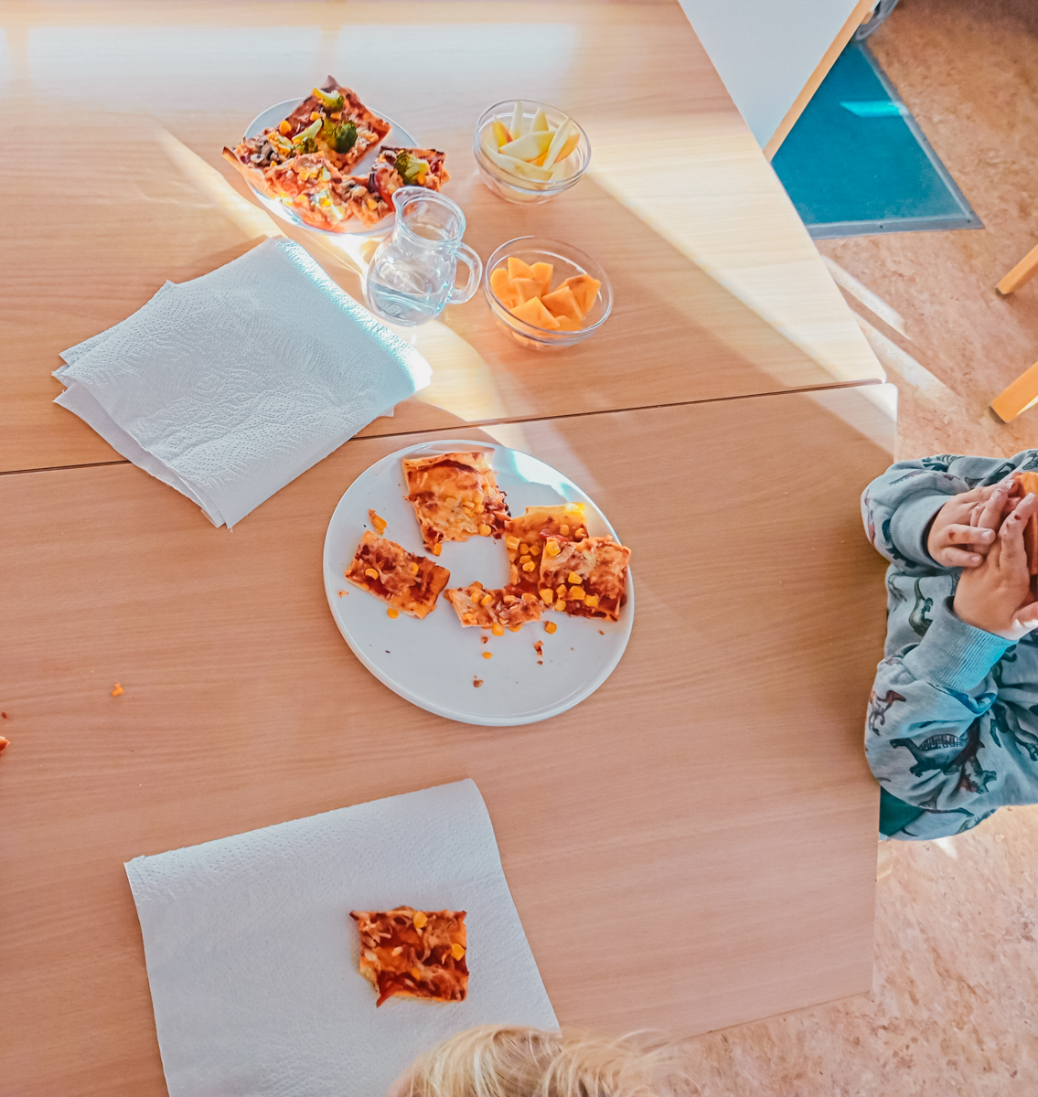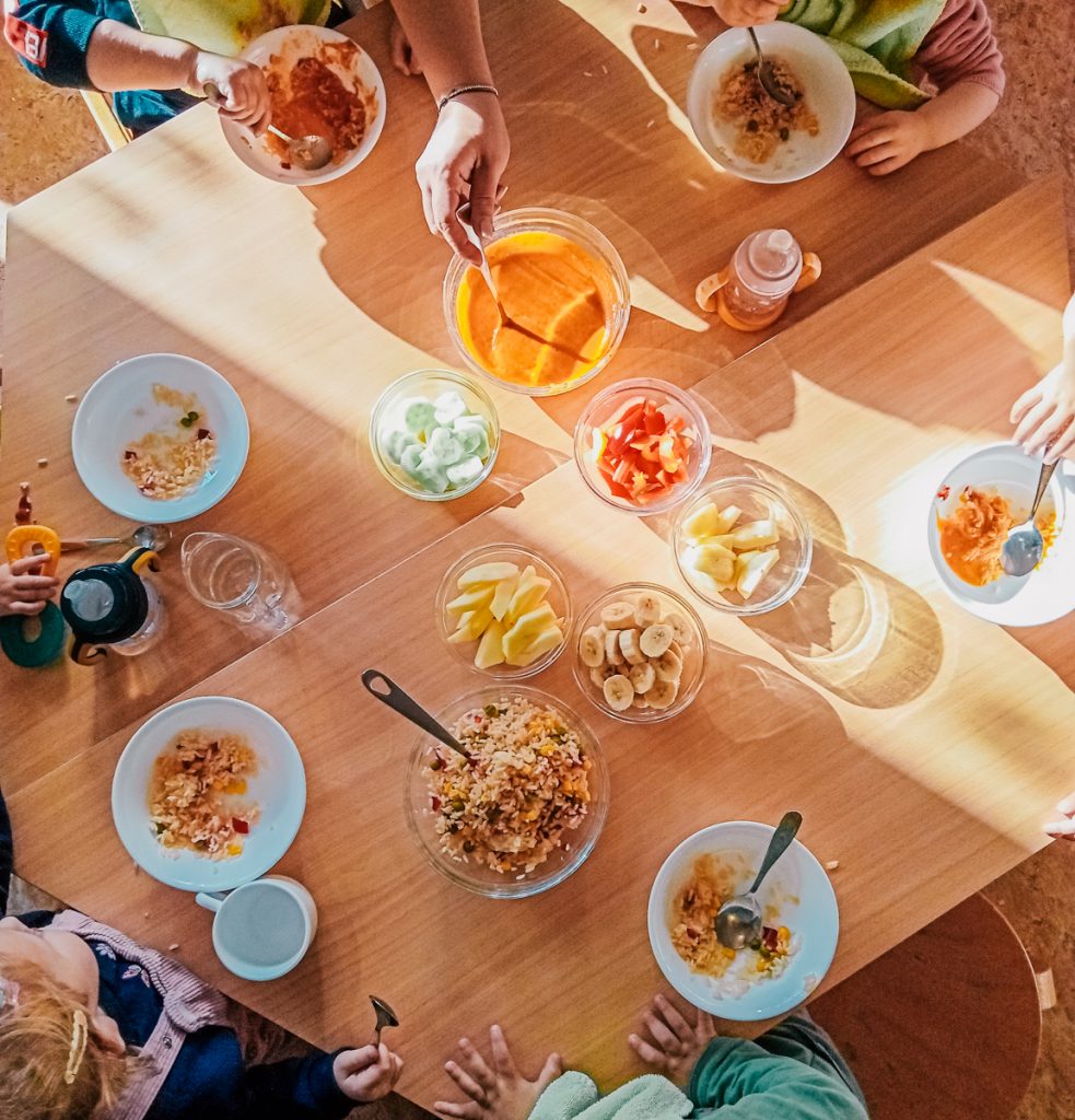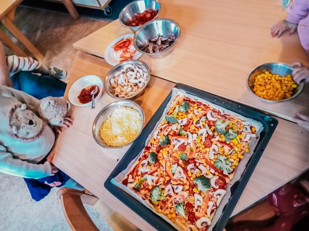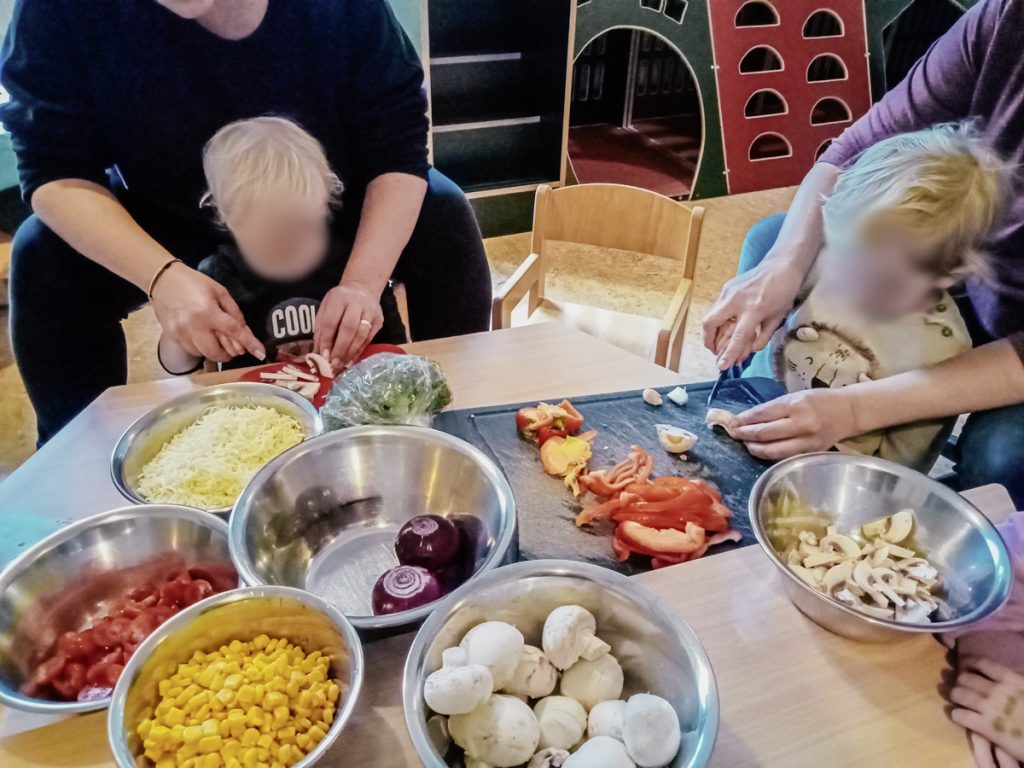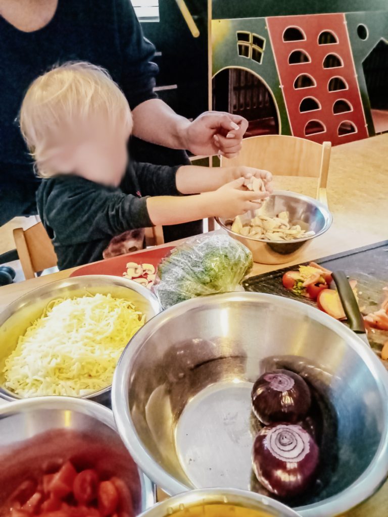 In der Krippe Zapperlott legen wir großen Wert auf eine gesunde Ernährung. Wir machen Ausflüge zu den lokalen Märkten in der Nähe. Anschließend verarbeiten wir das frisch gekaufte Gemüse und Obst gemeinsam mit den Kindern und zaubern ein leckeres Essen.